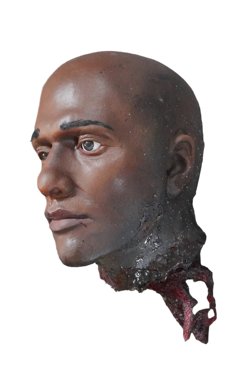 Burnt David is a male head with open eyes and a partially burnt finish.