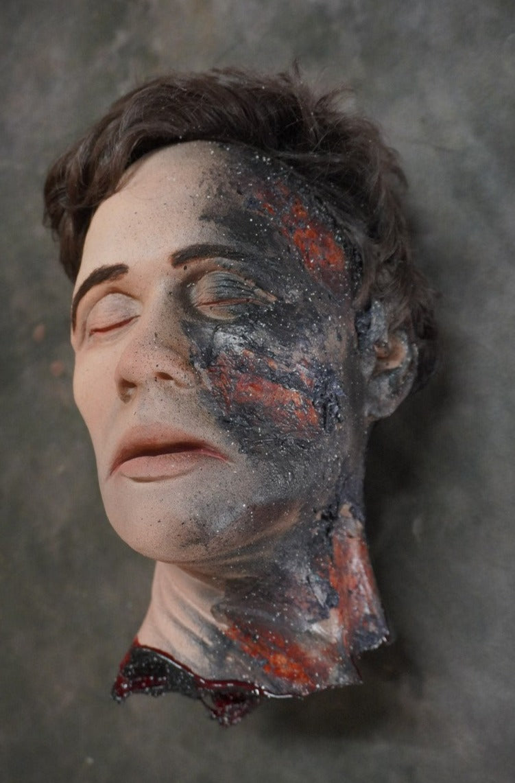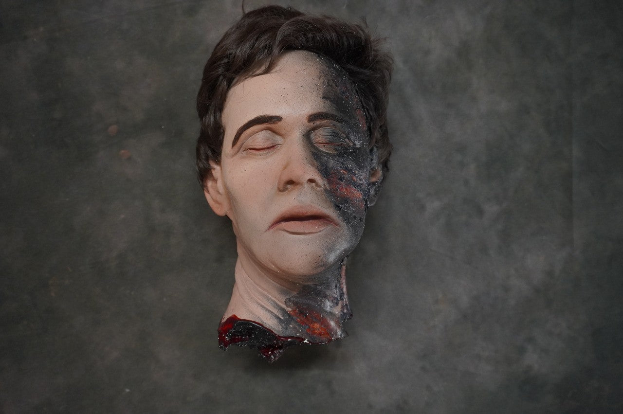 Realistic Alan head with burn wounds covering one side of the face.