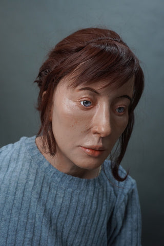 Realistic Alexis figure made with lifecast polyfoam rubber head and hands on crouching foam body with poseable arms and a removable stand. Includes clothing and wig. 5'0"