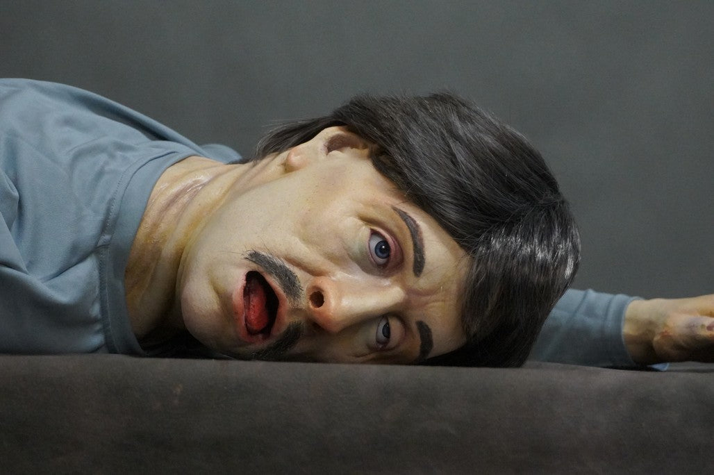 Gassed Gus Dummy features a realistic foam rubber head and hands on a durable, poseable canvas body. Gus's face has a turned neck, open eyes and an open mouth & tongue. Legs bend at the knee and hip, arms bend at the elbow and shoulder. Great as a stunt dummy or crime scene victims. Includes mans shirt, shoes, and pants (style and color vary).