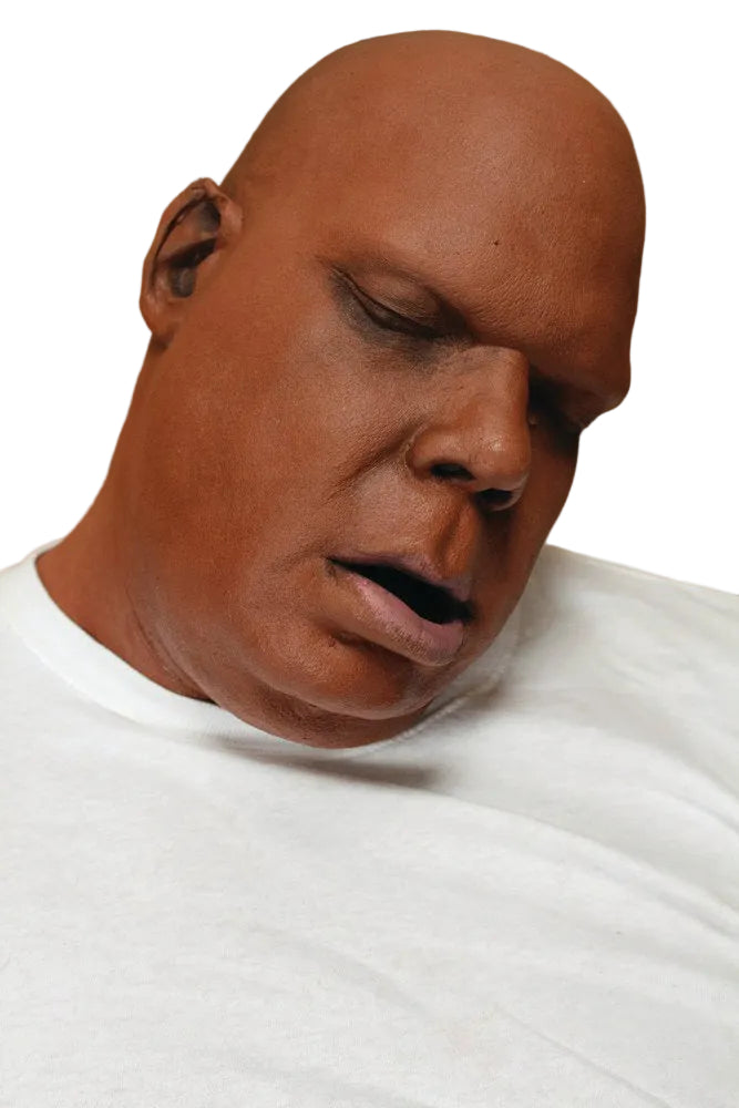 Full foam filled rubber body of a very large male with closed eyes. Internal standing armature so it can be displayed standing or laying.