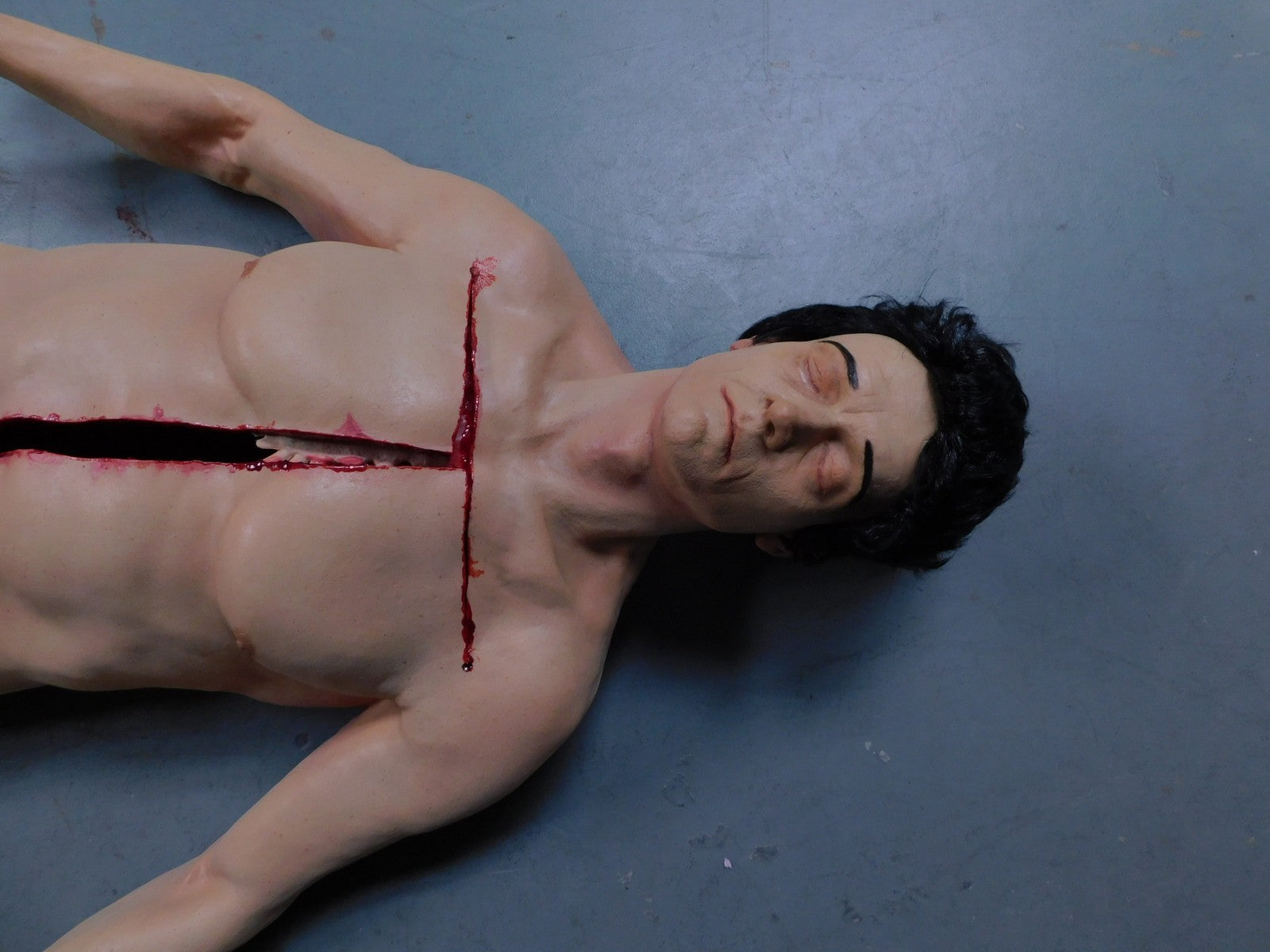 Our deluxe anatomical male Jack body with autopsy Y incision that can be opened. Cast in high durability "dura-rubber" for long lasting versatility. Inside is a medically accurate and realistic ribcage and removable organs including 2 lungs, 1 heart, 1 liver, 1 stomach, 2 kidneys, and both a "rope" style and a "flat" style intestines. Our autopsy bodies are suitable for use as training dummies in forensic schools. Dapper Cadaver is the manufacturer and sole source of the Anatomical Jack Bodies, as well as a variety of related simulation bodies and body parts. Our bodies are distinct from other manufacturer's bodies in that they are life cast, and so are incredibly realistic in appearance from major structures such as musculature down to minute details such as skin pores. Our bodies are specifically designed to appear as a convincing dead human being, with or without injury, as opposed to a mannequin-style human stand in. Because of this our bodies are used in training simulations as well as movies and television shows whenever a real corpse is meant to be seen. Our bodies are durable and light weight, averaging 30-40 lbs per body. This makes costuming, transportation, and set up extremely efficient.