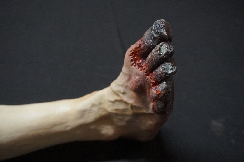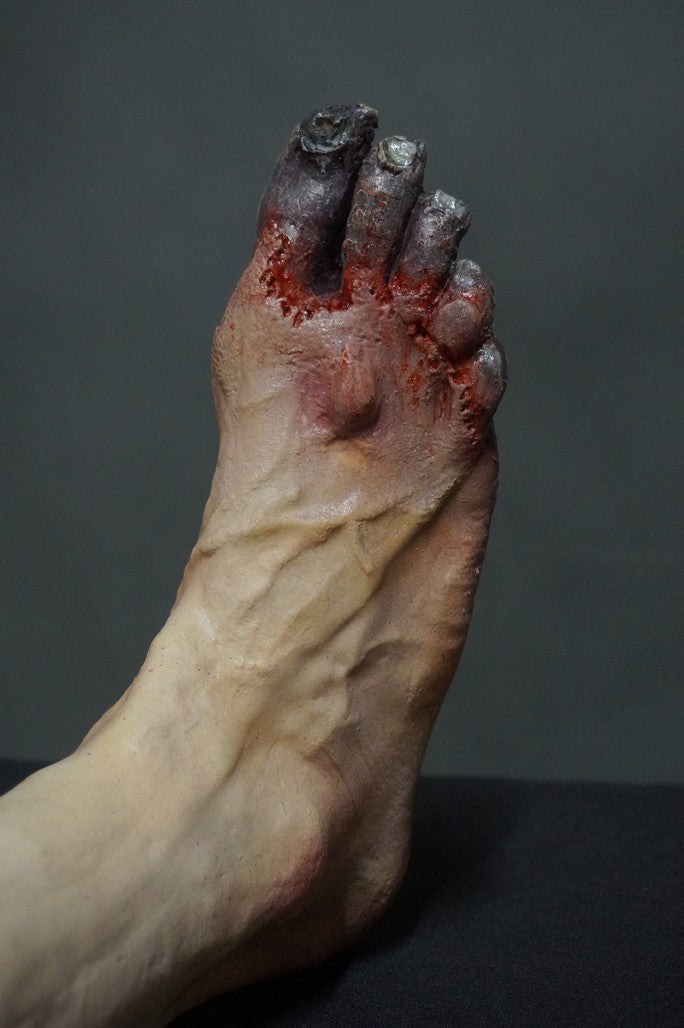 The Frostbite Jack Leg is a lifecast muscular leg featuring frostbite on toes and throughout the bottom of the foot.