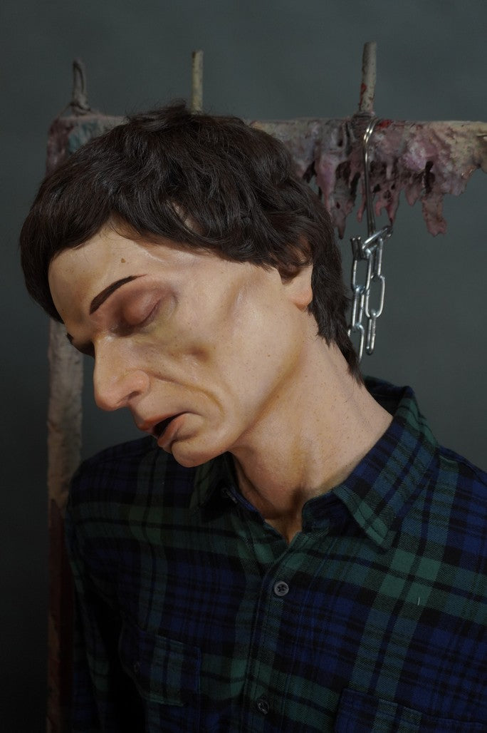 Alan figure with reinforced chain for hanging by neck. Lifelike head and hands on a poseable figure.