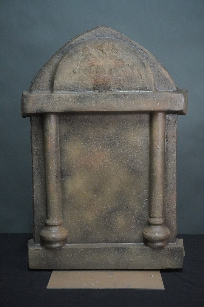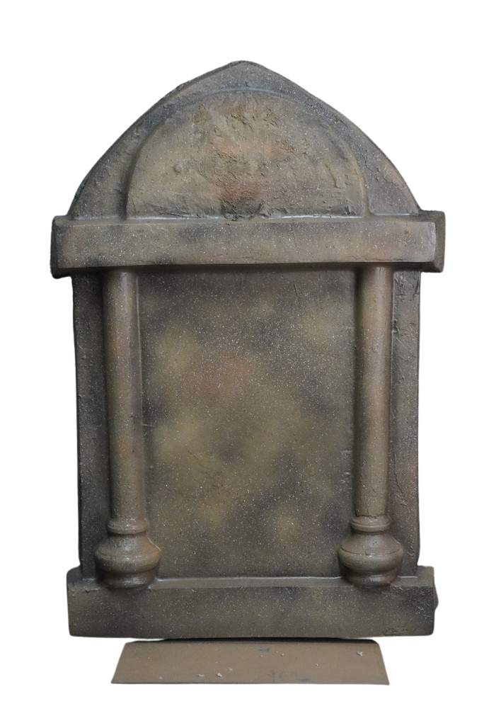 Realistic blank tablet headstone. Made of long lasting foam filled dura rubber with PVC armature for support and for staking into the ground. Optional steel plate base for standing up inside sold separately.