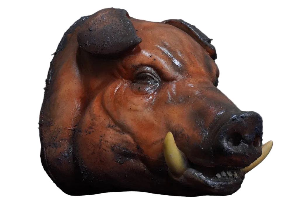 Detailed BBQ boar head prop with tusks. About 16 inches long. Perfect for a butcher shop or creepy feast scene. Pig fat roast pig head. Very detailed and realistic. 13" x 14" x 12"