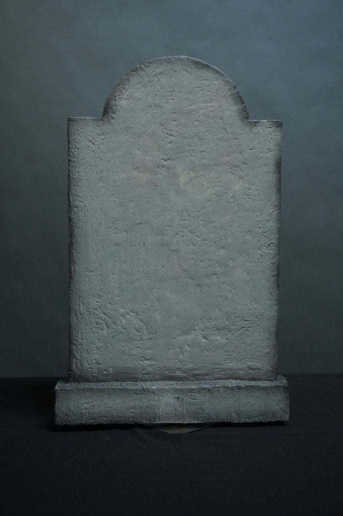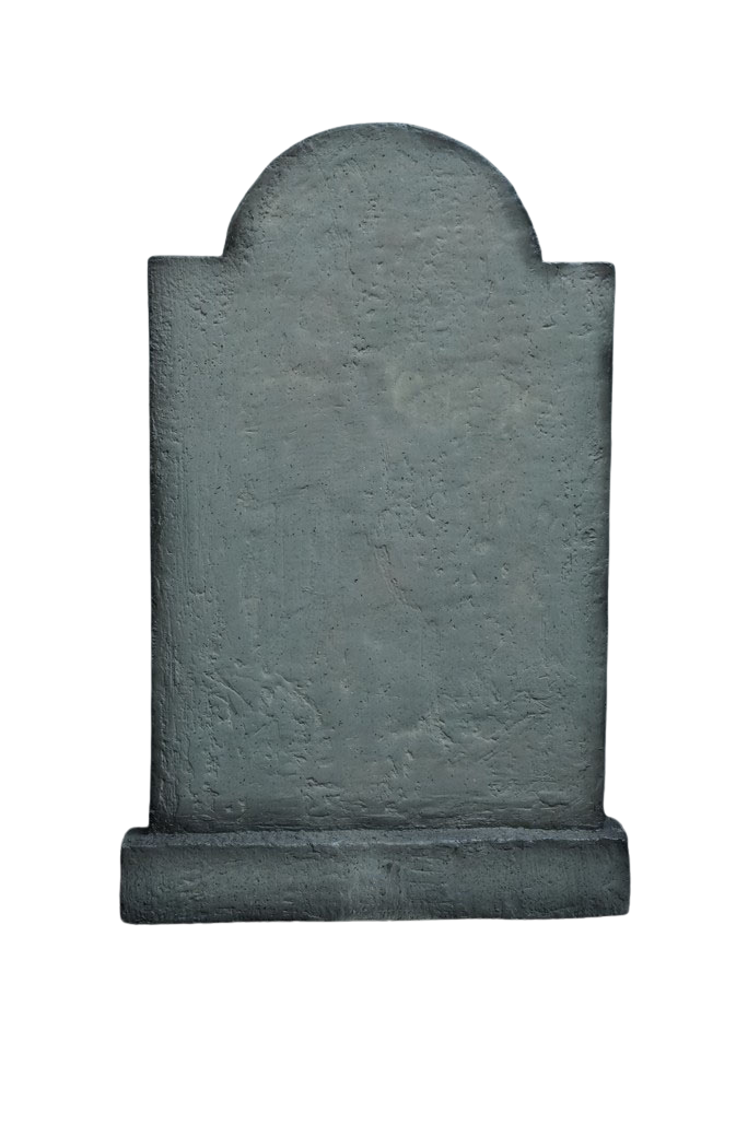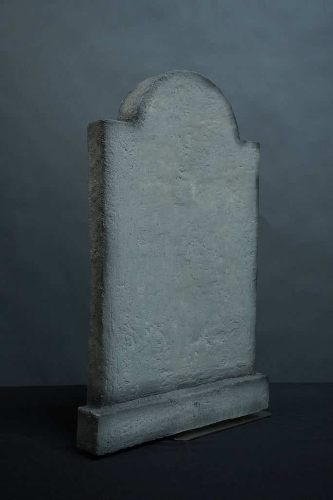 Realistic blank tablet headstone. Made of long lasting foam filled dura rubber with PVC armature for support and for staking into the ground. Optional steel plate base for standing up inside sold separately.