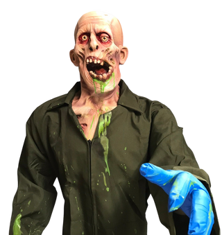 Twisted toxic zombie figure with stand. Perfect prop for your haunted house or Halloween setup.