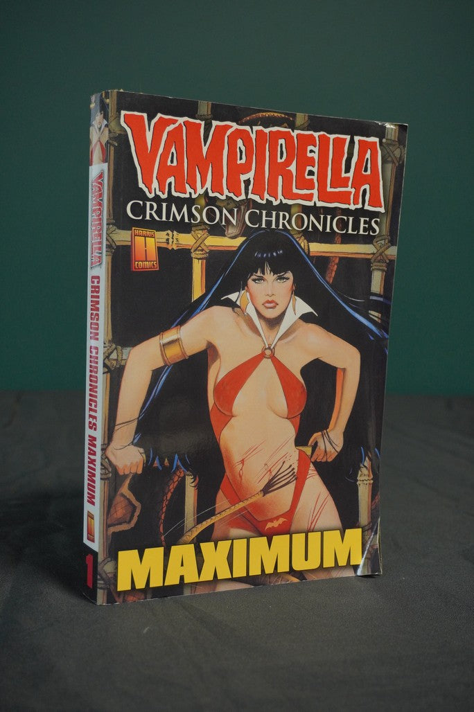 An essential collection of the classic Vampirella comics. Contains issues #1-37. Used paperback in fair condition. Cover wear & tear and bent pages as pictured.